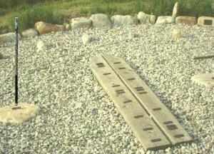 zum entsprechenden Datum, zeigt der Stab ostwärts die Richtung des